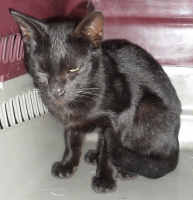 Recollida en Santiago de Compostela. Parece unha gata caseira e chega ferida.