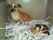 Zona de Fraiz, Viduido. Xa avisaran cando estaba preñada pero non puideron collela. Agora pareu hai 2 días, e cos cativos non se movía do sitio. Chega con 4 cativos.
