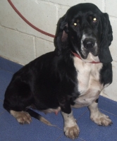 Atopada en San Lázaro. É moi medosa e se bloquea pero non bota a boca, só está asustada. É unha típica cadela de caza que xa tivo camada.