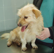A súa dona morreu e os seus netos trouxérono ao Refuxio, xunto cun compañeiro, porque se escapaba e comía ás galiñas pero é moi cariñoso.