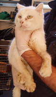 Recollida en Santiago de Compostela. Parece unha gata caseira e chega ferida.