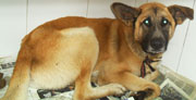 Recollido en Santiago de Compostela, chega moi feble.
