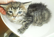 Atopado no mesmo sitio que outro grupo de gatos que xa viñeran. É unha zona onde se xuntan bastantes deles. Parece boa, ten medo e bufa pero non bota a zarpa. Está en acollida.
