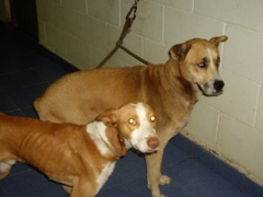 Chega con outro can. Ten puntos na cara, parece atropelada. Son moi bos os dous pero chegan moi fracos e con moita fame.