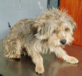 Recollido en Santiago de Compostela, chega moi feble.