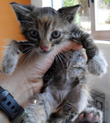 Recollida en Santiago de Compostela. Parece unha gata caseira e chega ferida.