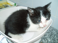 Recollido en Santiago de Compostela, chega moi feble.
