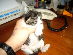 Recollido en Santiago de Compostela, chega moi feble.