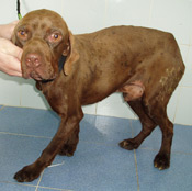 Recollido en Santiago de Compostela, chega moi feble.