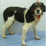 Deixárono dentro do Refuxio xunto con outra cadela. Estaba moi asustado e custou moito collelo. Adaptouse perfectamente e é un can moi cariñoso. A demostración disto é que o pasou moi mal cando o separamos da súa compañeira de canil.