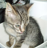 É un dos gatos da camada que o servizo de recollida atopou días despois de recoller aos seus tres irmáns. Están moi asustados e en moi malas condicions, teñen ata carrachas.