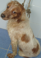 Recollida en Santiago de Compostela. Parece unha gata caseira e chega ferida.